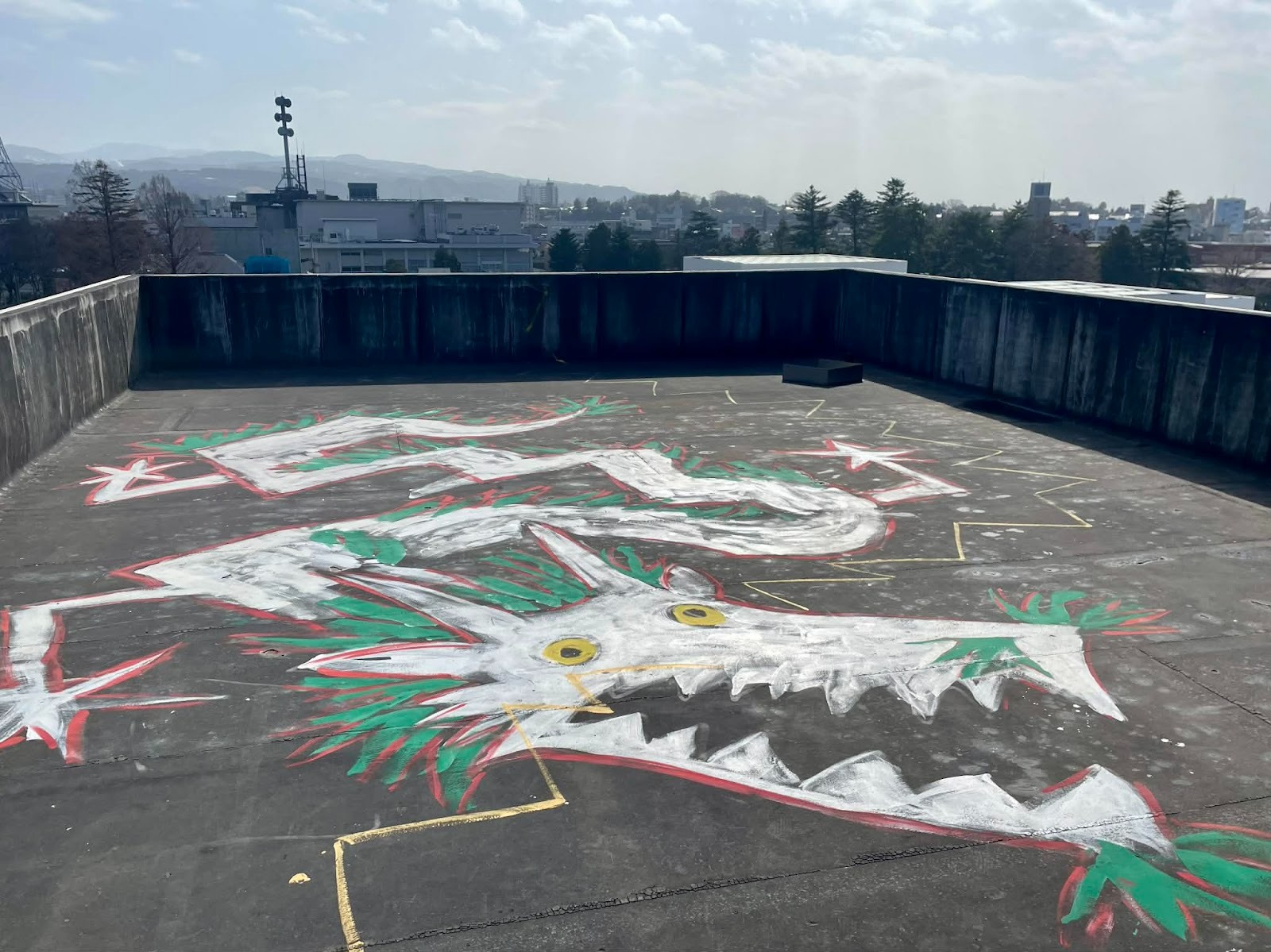 あと、屋上にも見られるものを作りたいなと屋上の地面にも絵を描きました。初めてあそこからの景色を見たとき「これはいける!」と思いましたね(笑)。金沢の街を一望できる、ここだけで来る価値があるなと。金沢に新しい視点を与えられる、このビル自体がアートです。