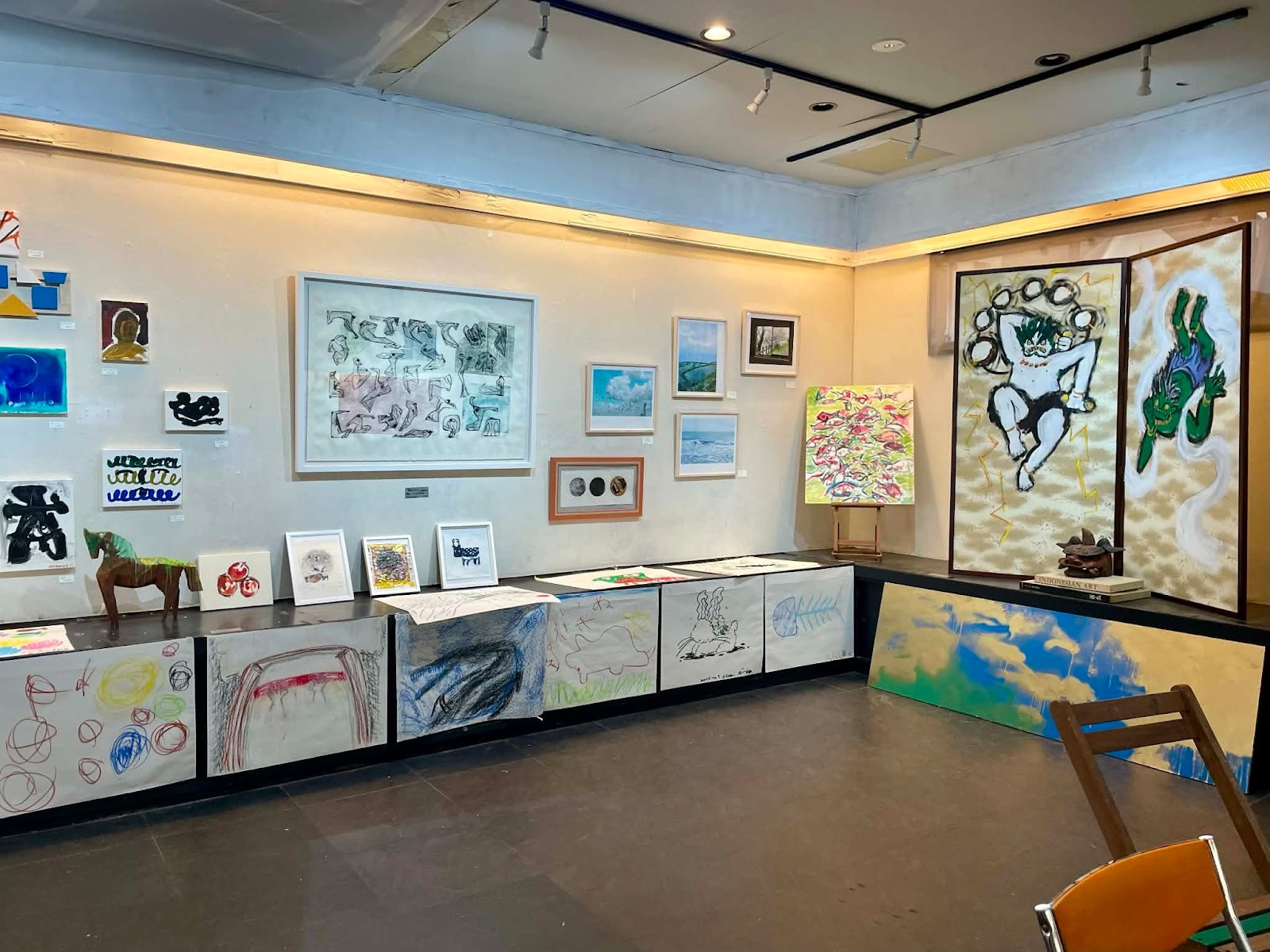 アメリカの美術館では、展示室でイーゼルを立てて絵を模写している人がよくいるんですが、それを参考に1階には子どもさんが来たらその場で絵が描ける場所も用意しています。完成した作品はそのまま飾ったりして。「すごい上手!」と褒めると子どもの自己肯定感も上がって、絵に限らず、とにかく自分に自信を持って生きていってもらいたいなと。今まさにここで、コンテンポラリーにアートが生まれる瞬間を作っているんです。